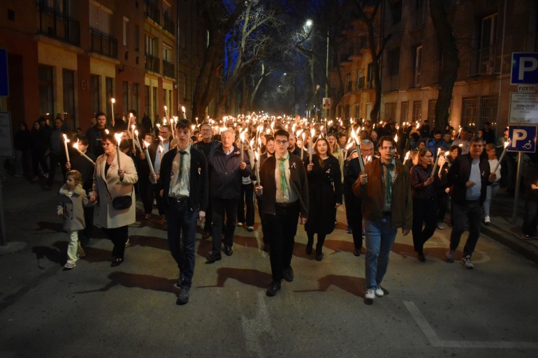 Hagyományosan fáklyás felvonulással emlékeztek a '48-as forradalom és szabadságharc hőseire Cegléden március idusának előestéjén. A résztvevők ezúttal is a Rákóczi úton a Szabadság térig vonultak, akiket Molnár László népzenész tárogatójátéka fogadott. Beszédet Gál Vanessza, a Ceglédi Ifjúsági Önkormányzat elnöke mondott, majd a megemlékezés végén megkoszorúzták a Kossuth szobrot Cegléd és Gyergyószentmiklós ifjúsága nevében.