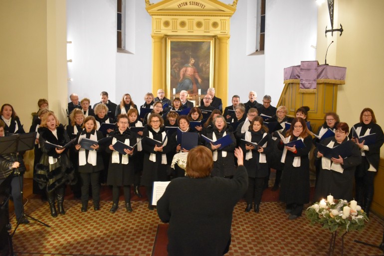 A Kardos Pál Pedagógus Énekkar fellépésével vette kezdetét az adventi hangversenysorozat ma este az Evangélikus Templomban. A kórust Soltészné Lédeczi Judit Liszt-díjas karnagy vezényelte, közreműködött Lázár Ágnes korrepetitor.   (Fotó: Szokolai Attila) tovább ►