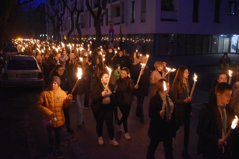 (Fotó: Szokolai Attila/Fáklyás felvonulás Cegléden 2025. március 14-én)