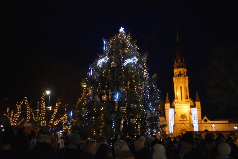 A Református Egyház és a Török János Református Oktatási Központ intézményeinek közreműködésével lobbant fel az első gyertya lángja ma délután a város adventi koszorúján. Ezzel egy időben gyúltak fel az ünnepi fények is a Szabadság téren.