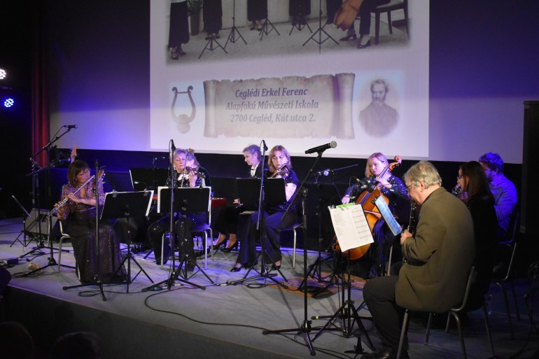 A Ceglédi Szalonzenekar adta újévi koncertjét a George Pal Filmszínházban ma délután. A zenekar a Ceglédi Erkel Ferenc Zeneiskola tanáraiból alakult formáció, akik a tanítás mellett közös szenvedéllyel állnak színpadra, hogy a klasszikus zene eleganciáját és az ünnepi dallamok hangulatát a közönséghez is közelebb hozzák. A zeneiskola tanárainak előadása után a Vadvirág zenekar lépett fel. A Vadvirág egy igazán különleges, erre az alkalomra összeállt akusztikus együttes, amelynek tagjai a WOM zenekar, valamint az Ana és a Willamos együttes zenészeiből állnak.