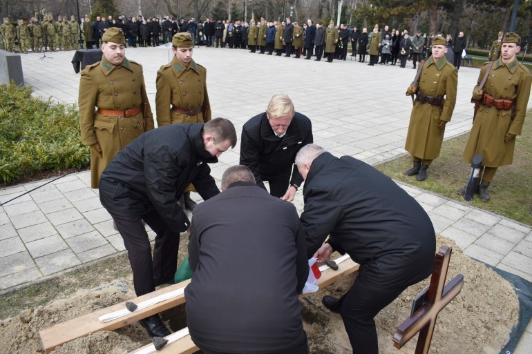 103, a hazáért hősi halált halt magyar katonát, köztük a ceglédi Újvárosi Temetőből exhumált 22 honvédet helyeztek örök nyugalomra a Fiumei úti Sírkert Hősök Parcellájában ma délelőtt. A tavalyi év során exhumált magyar katonák ünnepélyes újratemetésén Szalay-Bobrovniczky Kristóf honvédelmi miniszter mondott megemlékező beszédet. Városunk képviseletében Dr. Csáky András polgármester és Reznák Erzsébet történész, a Kossuth Múzeum nyugalmazott igazgatója helyezte el a megemlékezés koszorúját.
